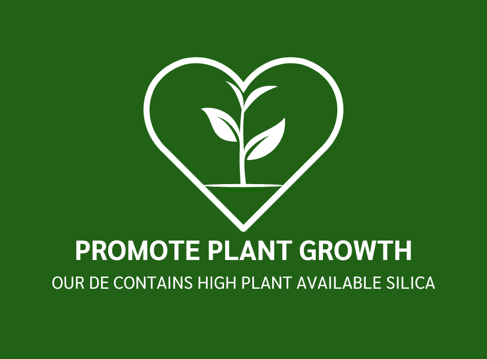 Diatomaceous Earth is an excellent soil amender, its addition to soil improves silicon and cation concentrations necessary for plant growth. Diatomaceous Earth contains amorphous silicon dioxide, which has micro nutrients that can be absorbed in the root system and trans-locate into the cell wall. The silica content of diatomaceous earth is absorbed into plant tissue and helps improve plant structure.
