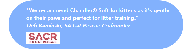 Specifically formulated for young cats, Chandler® Soft Cat Litter uses 100% natural Australian Attapulgite Clay (also called Fullers Earth). Its non-clumping, soft texture is gentle on delicate kitten paws, making it easier and safer for them to learn proper litter habits.